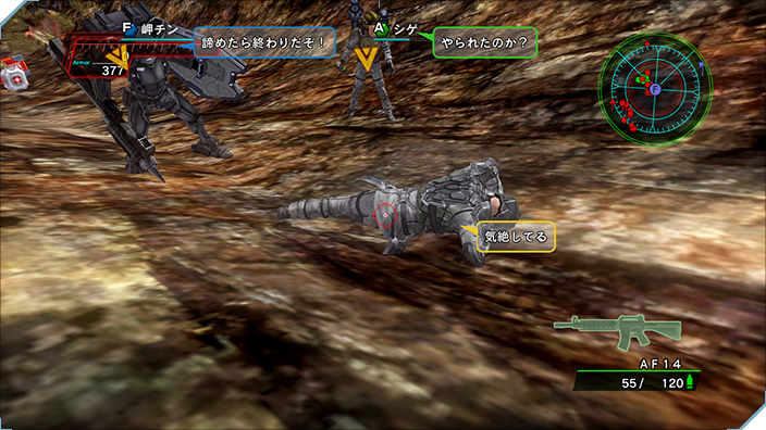 寝ずに頑張って!■プレイヤー救出 オンラインプレイでは、アーマー(体力)が0になって倒れた他プレイヤー