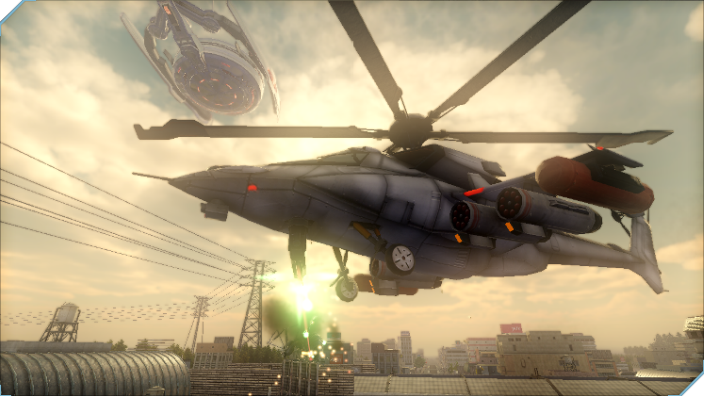 おなじみEDFの主力戦車ギガンテス。アメリカ製作でリメイク発売された「EDF」では複数名が搭乗し、機銃を撃つこともできたが、今作では1名のみ。