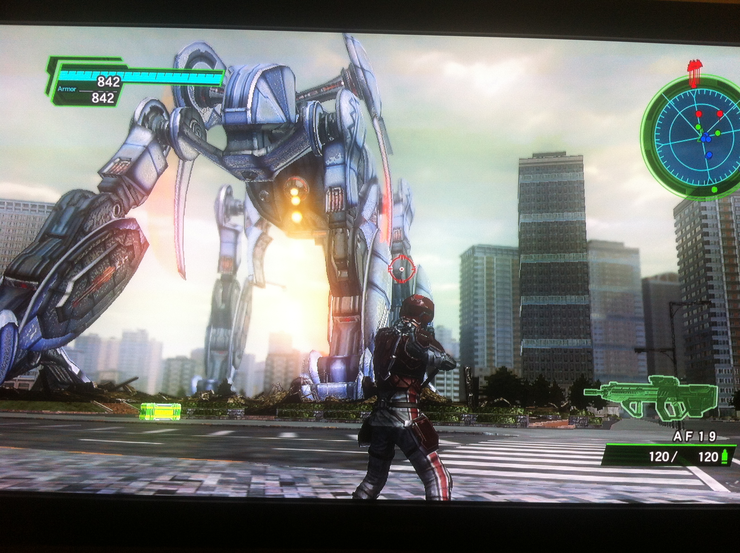 ③新型はシールドを持っているけれど、前方からの攻撃が効かない訳ではないわ。シールドの範囲外になっている左手(プレイヤーから見て右の手)はダメージを与えられるの。ライフルなどで攻撃しまくって!