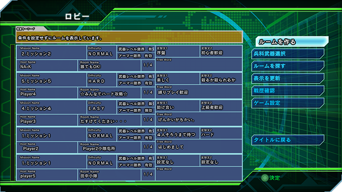 ■プレイモード設定 プレイヤーはロビーでホスト(ルームマスター)となり「ルームを作成して