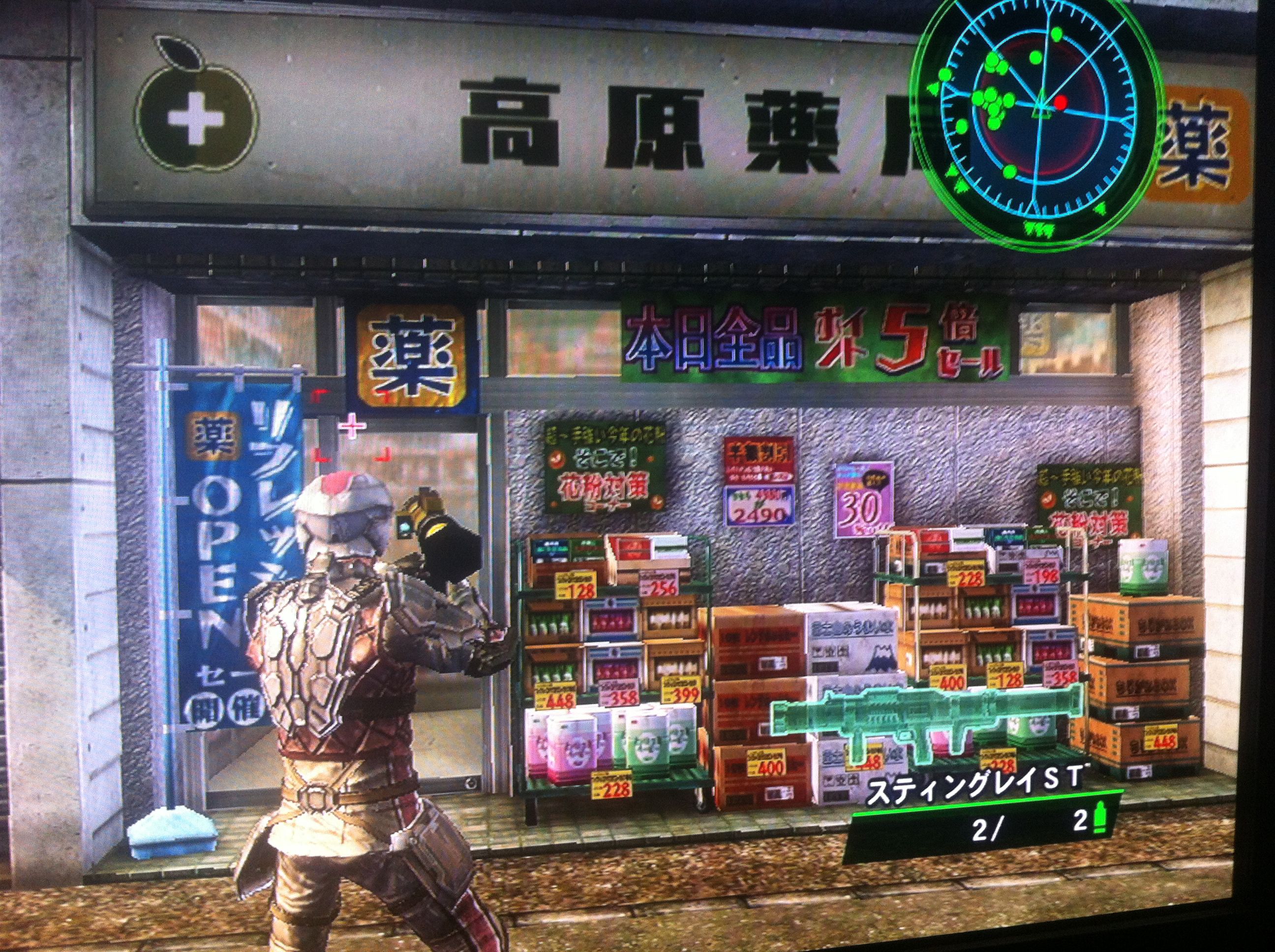 EDF隊員を癒す薬はないのかしら。薬局を破壊すると体力回復アイテムが出てきたりするとおもしろいんだけれどね。