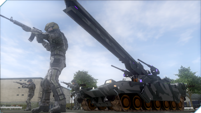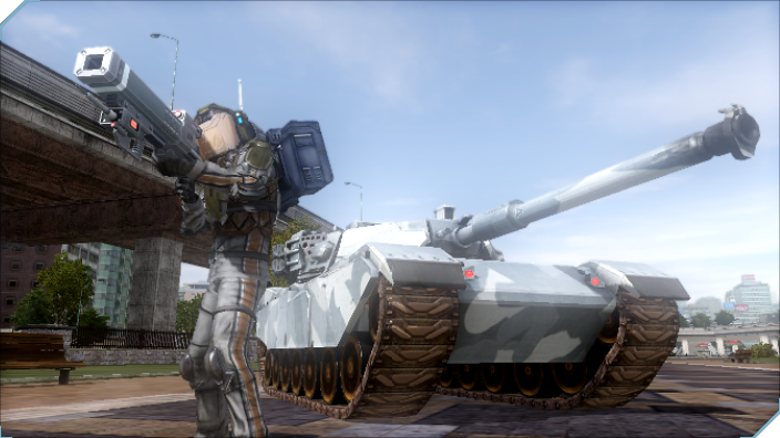 おなじみEDFの主力戦車ギガンテス。アメリカ製作でリメイク発売された「EDF」では複数名が搭乗し、機銃を撃つこともできたが、今作では1名のみ。
