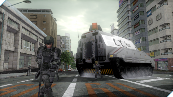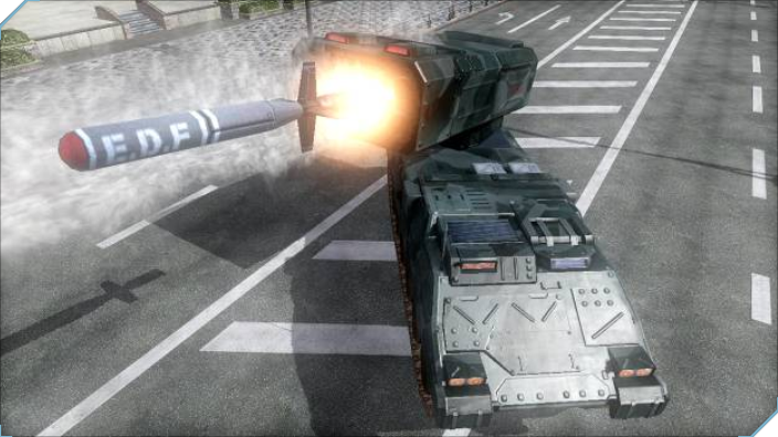 おなじみEDFの主力戦車ギガンテス。アメリカ製作でリメイク発売された「EDF」では複数名が搭乗し、機銃を撃つこともできたが、今作では1名のみ。